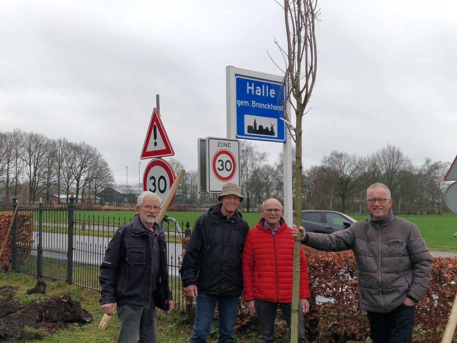 Halle’s Belang had het plan om de entrees van Halle aan beide kanten van de Dorpsstraat te verfraaien met, onder meer struiken en bomen. De provincie Gelderland verleent daar echter geen toestemming voor. Hallenaar Wim Klanderman heeft het daarbij niet laten zitten en heeft het plan vormgegeven om (juist naast de provinciale weg) op de begraafplaats enkele bomen te planten als entree van de westzijde van het dorp.