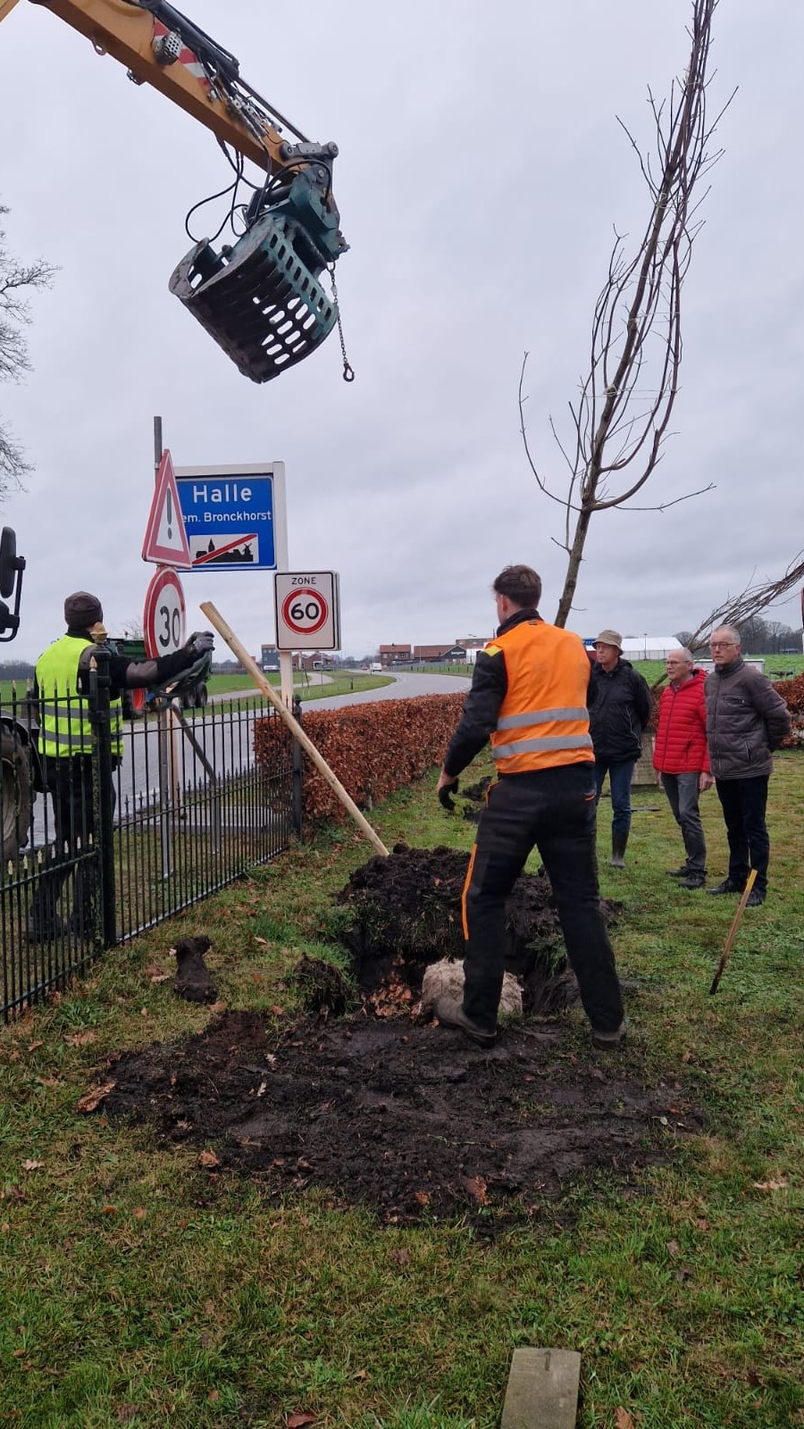 Op vrijdagmorgen 19 december zijn er drie rode esdoorns geplant. Deze esdoorns zijn geschonken door de Gemeente Bronckhorst. Het project was slechts mogelijk met medewerking van de beheerders van de Halse begraafplaats. De entree vanaf Zelhem ziet er nu wat mooier uit.